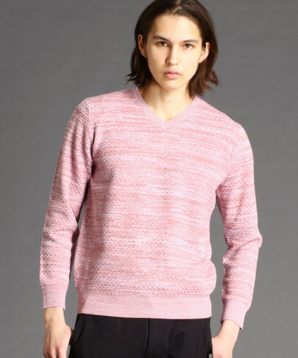 メンズ Ff30g スイスコットンvネックニットプルオーバー ピンク