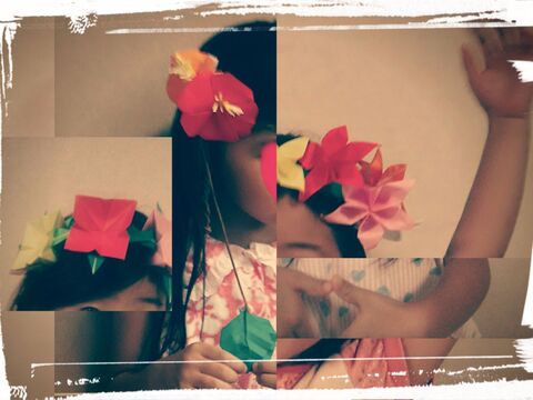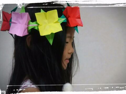 モアナ風折り紙で太陽と海の花かんむり ほっこりシアワセ時間