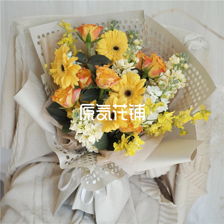 Sunshine 黄金海岸玫瑰紫罗兰花束