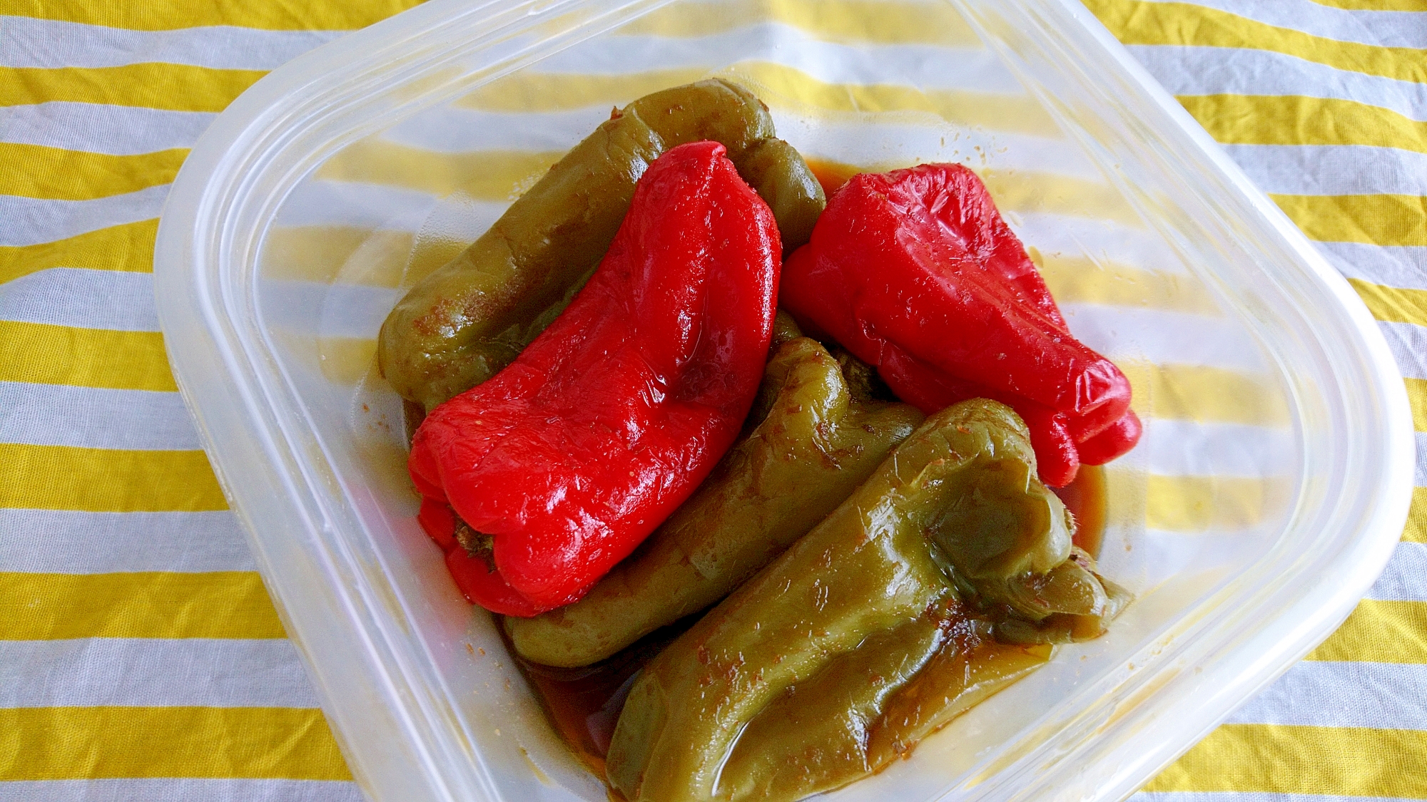 赤ピーマンと緑ピーマンの煮浸し レシピ 作り方 By ごはんが大好き 楽天レシピ