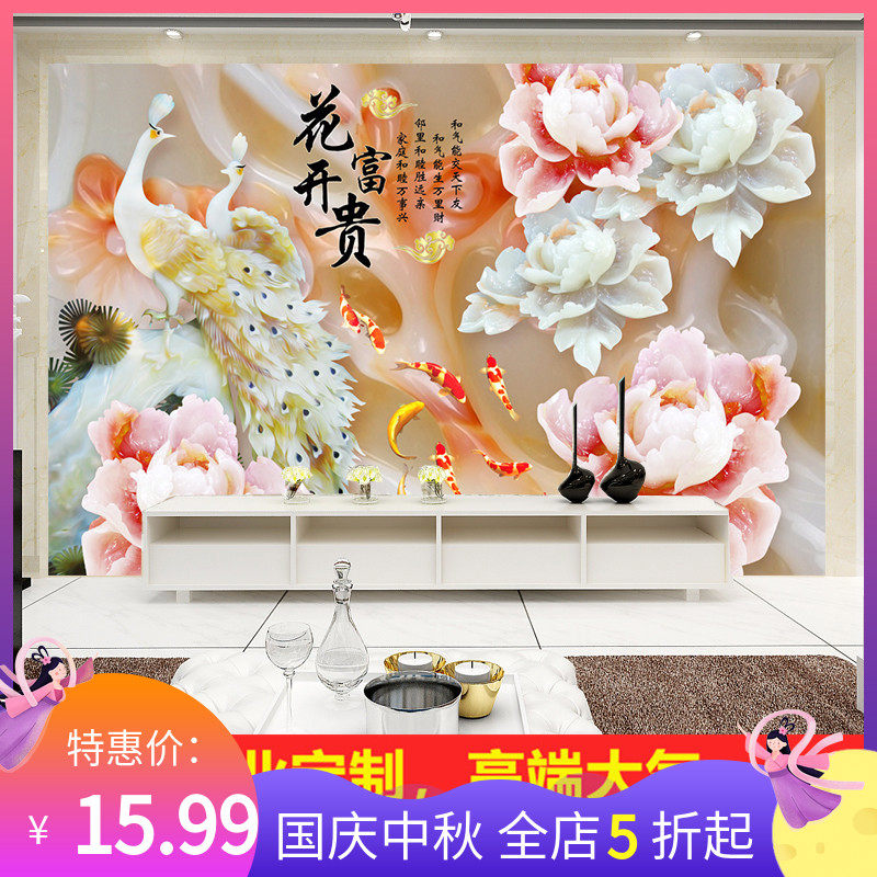 大型壁画牡丹电视墙徐州有卖壁画的吗 装修电视墙 想要整张贴的那种
