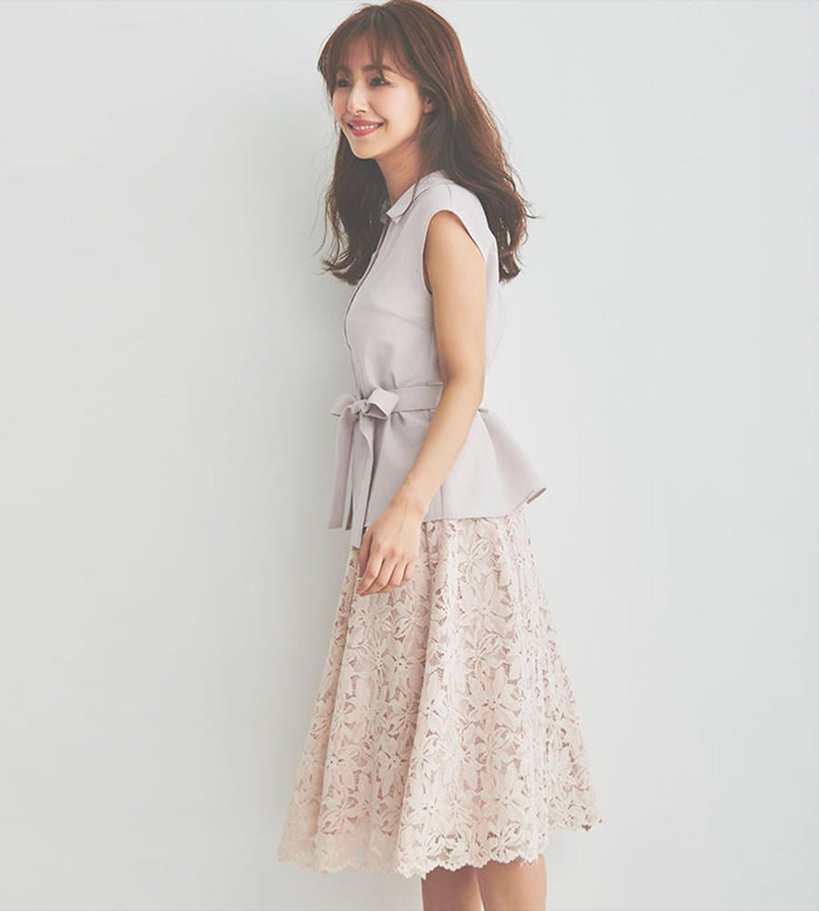 コーラルピンク ベージュで叶える 大人の絶品スカート コーデ 18 6 28のコーデ Baila おしゃれ感度の高い30代に向けてファッション ビューティ ライフスタイル 結婚 恋愛等のリアルを届けるサイト