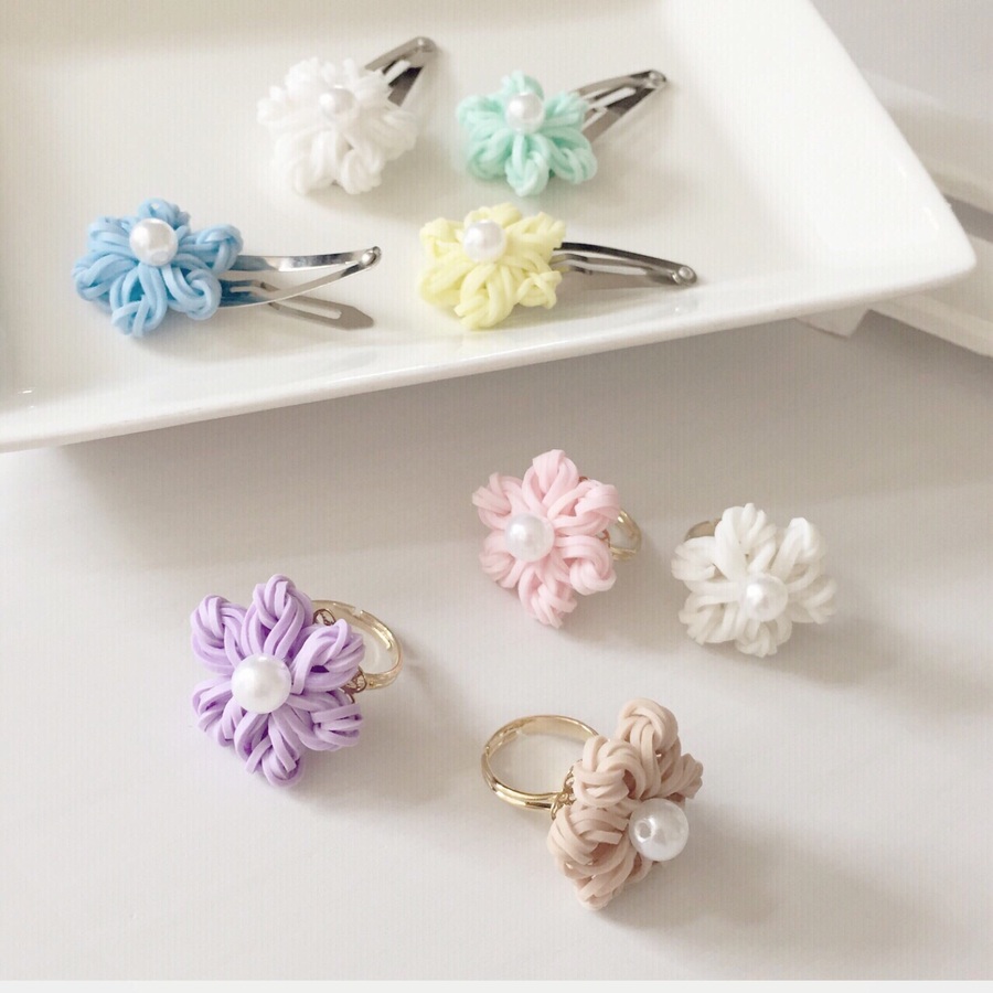 花 ニットリング8mm使用 をブレスレットへ Rainbowloom Rainbowloomer Monstertail Funloom Loombands Rubberband Funfunloomband レインボールーム モンスターテイル ファンルーム 花 モチーフ Flower Rainbow Loom Handmade Rainbow