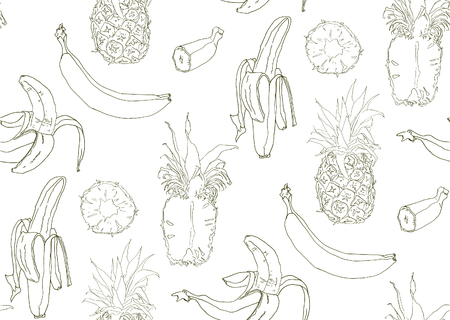 Banana Hand Drawn Sketch Line Seamless Vectorのイラスト素材