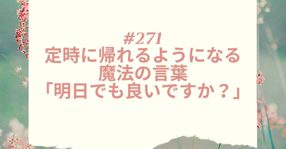 音声配信 271 定時に帰れるようになる魔法の言葉 明日でも良いですか 元気を毎日ラジオでお届け 音声配信虫育児ワーママかお Note