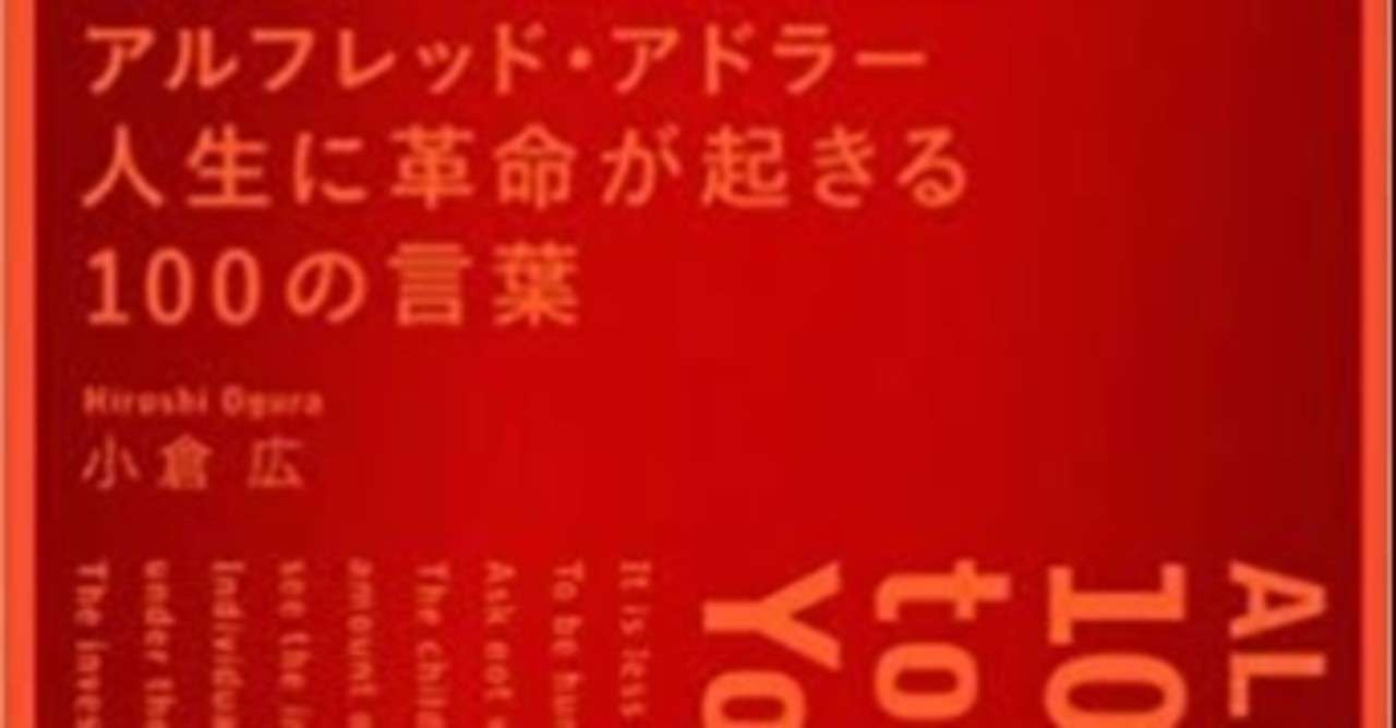 (「人生に革命が起きる100の言葉」より) 私の心に響いたアドラーの名言5選。 本のタイトル通り、100のコンテンツがあります。 サラッと読める本ですが、100も紹介していたらきりがないので、ここでは私が皆さんに5つの名言を紹介します。. アルフレッド・アドラー 人生に革命が起きる100の言葉 に関連する特集・キャンペーン 大ベストセラー『嫌われる勇気』著者の岸見一郎先生のお悩み相談!. アルフレッド・アドラー人生に革命が起きる100の言葉 posted with ヨメレバ 小倉広 ダイヤモンド社 14年02月 楽天ブックス 楽天kobo Amazon Kindle 7net 本書から得た気づきは以下のとおりです。 スポンサ.