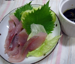 ツバスのお刺身 やまちゃんのお気楽ボート釣り